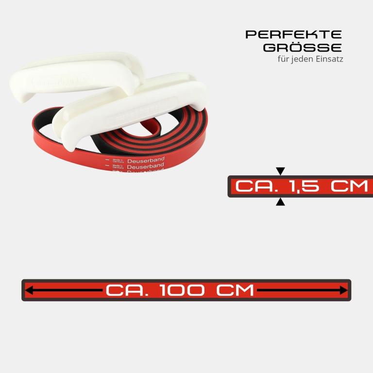 Qualität: Unsere Produkte werden mit größter Sorgfalt geprüft um unseren hohen Qualitätsstandard "Made in Germany" einzuhalten. Die geriffelte Innenseite ist Rutschfest, damit du immer sicheren Halt hast. Durch die 2 beigelegten Griffe liegt das Band immer gut in der Hand.