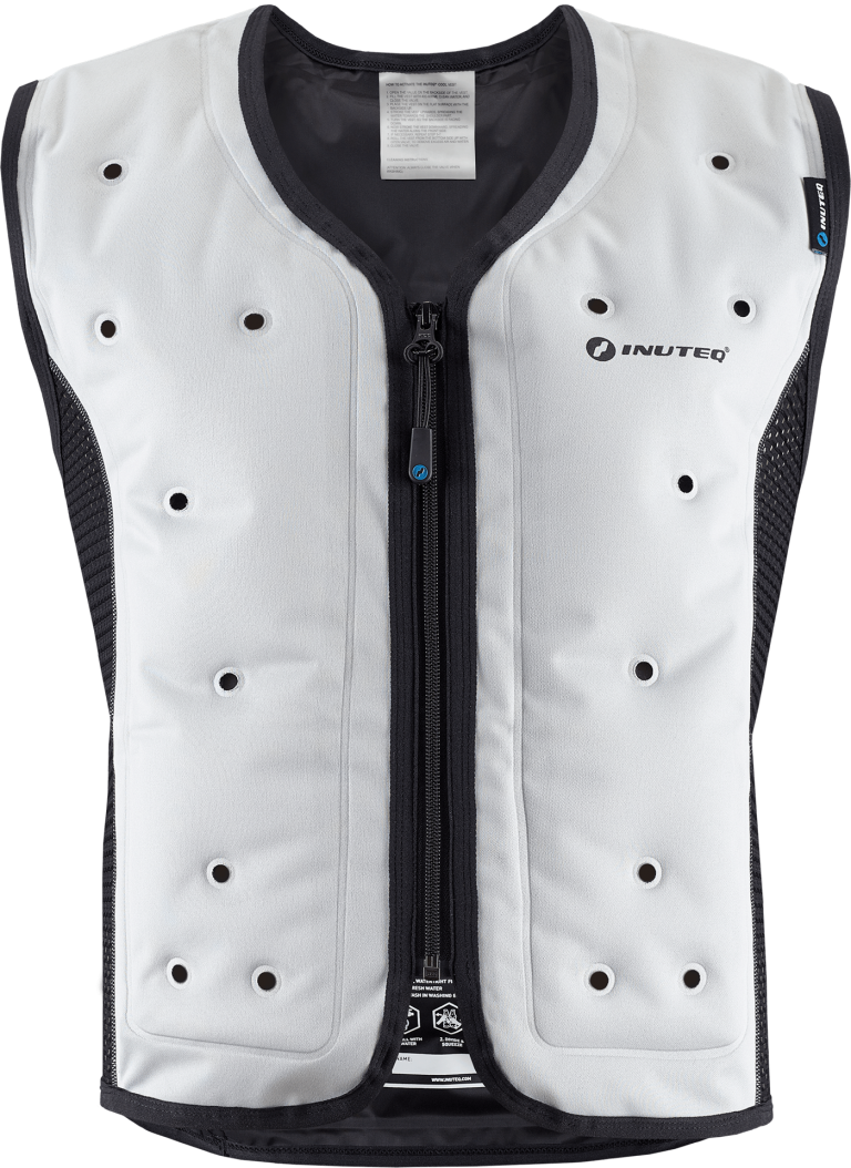 Die INUTEQ-DRY® Verdunstungskühlweste ist eine komfortable, leichte Weste. Sie reduziert Hitzestress und Müdigkeit und ermöglicht Ihnen dadurch eine bessere Leistung. Aufgrund des patentierten Systems wird die Weste nicht nass oder feucht und eignet sich daher zum Tragen unter der Kleidung. Dieses Produkt bietet Kühlung um bis zu 15°C unter der Umgebungstemperatur bei niedriger bis mittlerer Luftfeuchtigkeit. Der Luftstrom bestimmt den Kühleffekt.