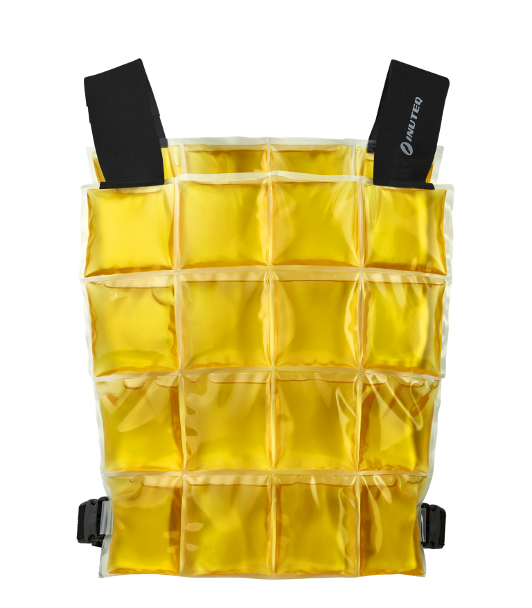 Die Kühlung erfolgt mithilfe eines biobasierten Phasenwechselmaterials (PCM - PhaseChangeMaterial), durch die hohe latente Wärme ist diese Technologie ideal für den Einsatz in verschiedensten Wärmebereichen. In diversen Brandsicherheitstests wurde nachgewiesen, dass das biobasierte PCM von INUTEQ einen deutlich höheren Flamm- und Brennpunkt bietet als vergleichbare Produkte aus Paraffin.